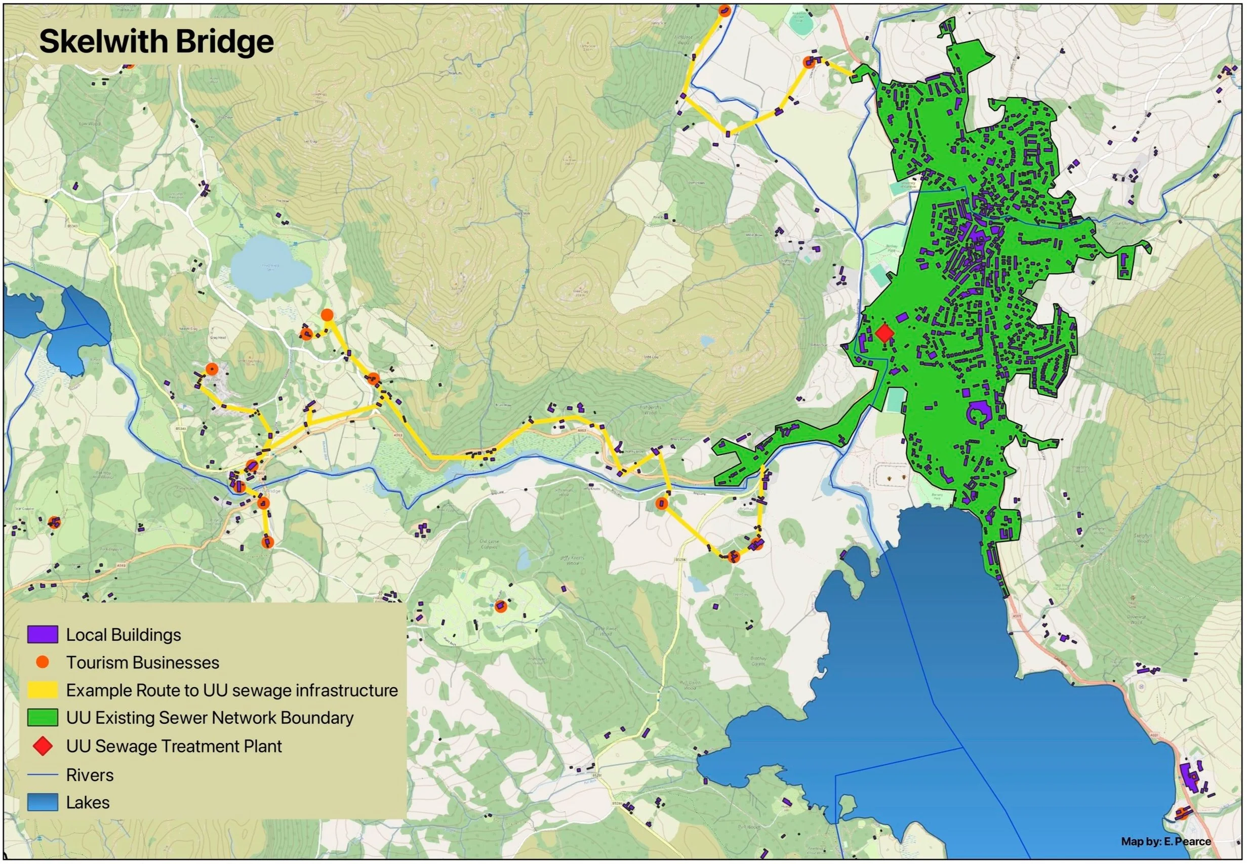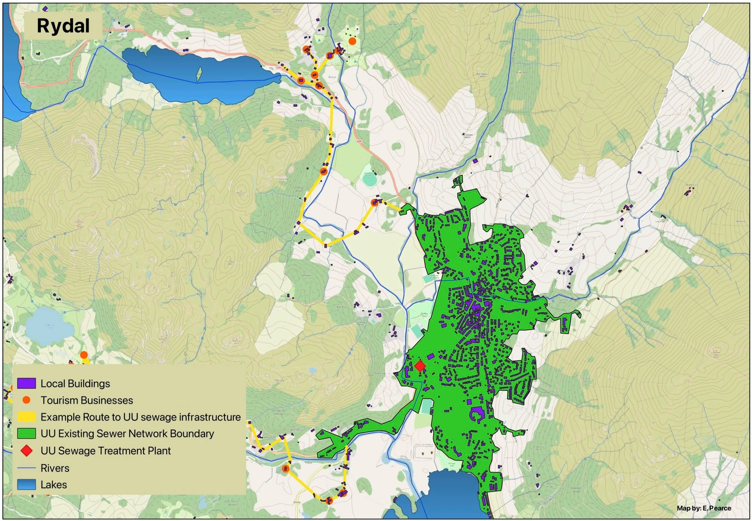 Given our additional insights, we are also able to assess the accuracy of UU’s maps, which are sometimes outdated. For example, the main sewer was not shown in the provided documentation as extending to Low Wood Bay Hotel, yet other EIR requests confirm that the hotel is connected—making this a lower-risk area.